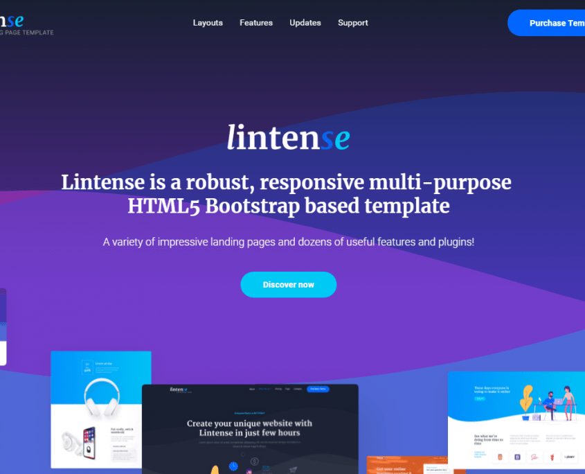Lintense is one of the newest landing page templates out there. It delivers you 5 ready-made page demos for corporate, single product, SEO agency, mobile app, promotion and other purposes. No matter whether you know code or not, customizing Lintense is faster with Novi Builder. This builder delivers you both an easy-to-grasp visual editor and powerful HTML and CSS editor. So, you choose your way to customize this theme.